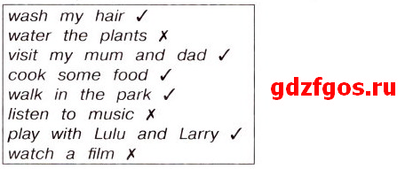 Посмотри на список дел, которые запланировала на выходные няня Шайн, и напиши, что она успела сделать, а что нет.
