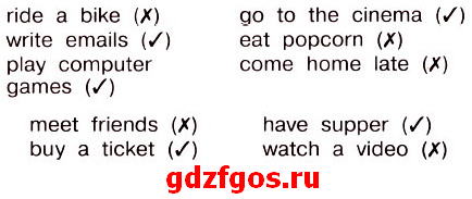 Last Sunday Andrey didn’t ride a bike. He wrote emails. He didn’t meet friends. He played computer games. He didn’t watch a video because he bought a ticket and went to the cinema. He didn’t eat popcorn because he had supper. He didn’t come home late.