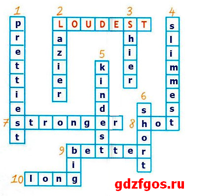 Поставь прилагательное в правильную форму и разгадай кроссворд.
