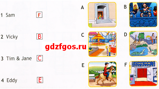 Что делали ребята на прошлой неделе? Послушай, посмотри на картинки и впиши соответствующую букву.