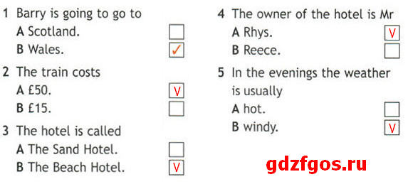 Послушай разговор Барри и его подруги Гвен о предстоящем отдыхе. Прочитай задания и выбери правильные ответы.