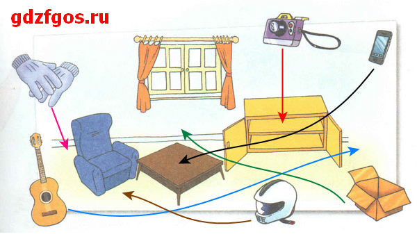 Прочитай предложения и соотнеси предметы с их местоположением.