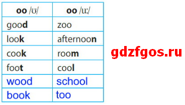 Read. Copy the table. Then put the words wood, school, book, too in the right column. – Прочитай. Скопируй таблицу. Затем поставь слова wood, school, book, too в правильную колонку.