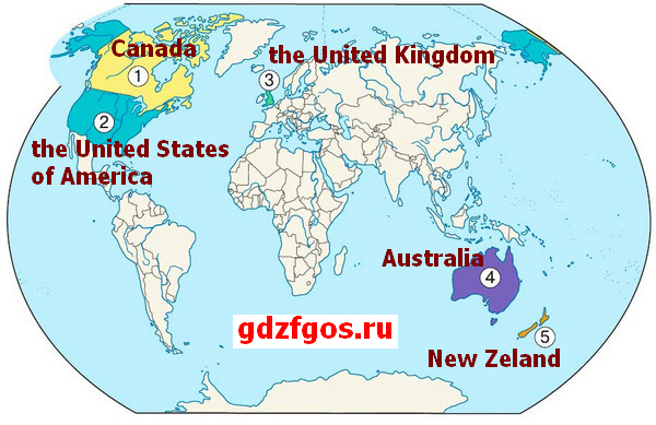 Read the names of English-speaking countries and show them on the map. – Прочитай названия англоговорящих стран и покажи их на карте.