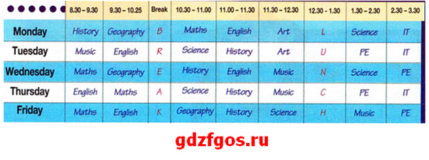 4. The geography lessons are on Monday, Tuesday and Thursday. – (F) – Уроки географии – в понедельник, вторник и четверг. — Неверно