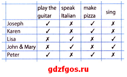 Look at the table and fill in can or can’t. – Посмотрите на таблицу и вставьте can или can’t.