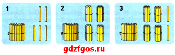 Запиши в таблице и прочитай трёхзначные числа, изображённые счётными палочками.
