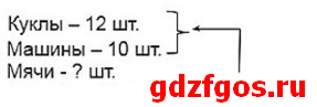 Для детского сада купили 12 кукол, 10 заводных машин, а мячей столько, сколько кукол и машин вместе. Сколько купили мячей?