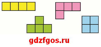 Так как каждая фигура состоит из четырёх одинаковых квадратов, то площади фигур равны.