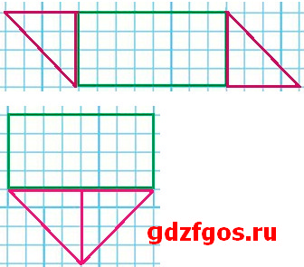 Начерти на клетчатой бумаге и вырежи прямоугольник и два треугольника, как на чертеже.