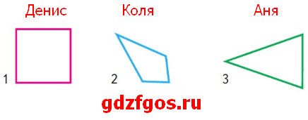 Квадрат начертил Денис; четырёхугольник — Аня; треугольник — Коля.