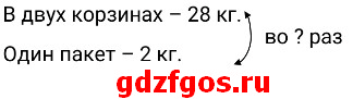 1) 28 : 2 = 14 (кг) — в одной корзинке