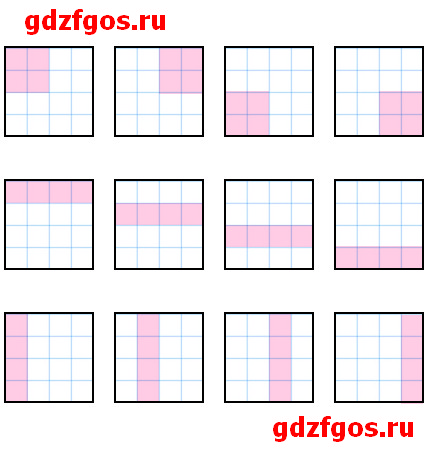 Начерти квадрат, площадь которого равна 4 см2. Раскрась его четвёртую часть. Покажи, как это можно сделать по-разному. Сколько квадратных сантиметров раскрашено? Чему равна площадь нераскрашенной части?