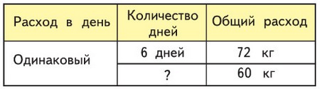 В столовой за 6 дней израсходовали 72 кг овощей. За сколько дней израсходуют 60 кг овощей при такой же норме?