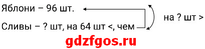 В саду посадили 96 яблонь, а слив на 64 дерева меньше. Во сколько раз больше посадили яблонь, чем слив?