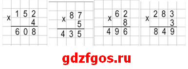 Умножаю сотни 1 * 4 = 4. К 4 сот. прибавлю 2 сот., которые получены при умножении единиц: 4 + 2 = 6. Пишу 6 под сотнями.