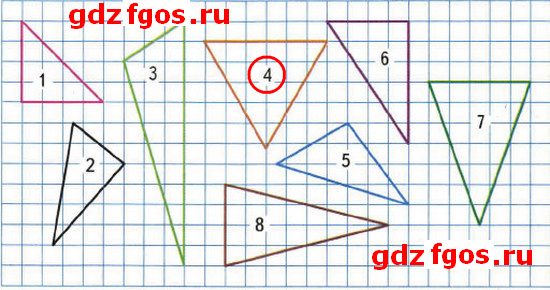 Разбей все треугольники на 2 группы: 1) разносторонние и 2) равнобедренные. Выпиши их номера.
