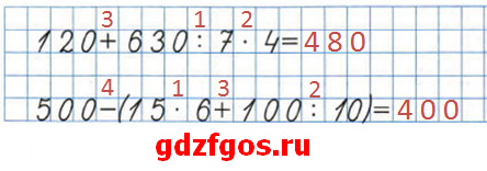 В каждом выражении сначала определи и запиши, в каком порядке должны выполняться действия, а потом вычисли значение каждого выражения.