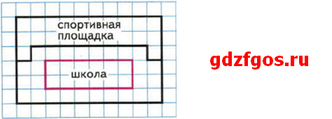Рассмотри план школьного участка. Определи его площадь, площадь, которую занимает школа, и площадь спортивной площадки, если 1 см2 на плане соответствует 200 м2 на местности.