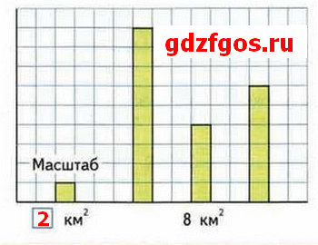 На диаграмме показаны площади трёх городов Подмосковья: Фрязино, Можайска и Озёр. Определи масштаб, в котором построена диаграмма, и запиши в таблице площадь каждого города, если площадь Озёр больше, чем площадь Фрязино, но меньше, чем площадь Можайска.