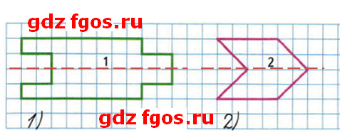 Найди площадь каждой фигуры. Проведи ось симметрии в каждой фигуре.