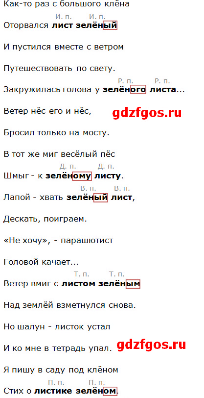 2. Определите падеж имени прилагательного зелёный по падежу имени существительного. Укажите падеж имени прилагательного.