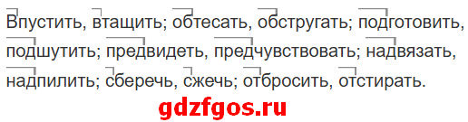 Пустить, тащить (в-); тесать, стругать (об-); готовить, шутить (под-); видеть, чувствовать (пред-); вязать, пилить (над-); беречь, жечь (с-); бросить, стирать (от-).