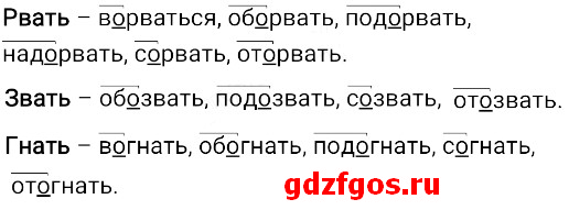 Подберите к глаголам рвать, звать и гнать однокоренные глаголы с беглым гласным в приставках. Обозначьте орфограммы в приставках.
