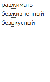 Беcшовный, беcчисленный, cдавать, раcчертить, раcширить, раcщедриться, бесчувственный, расшевелить, сжимать, разжимать, безжизненный, расщелина, безвкусный.