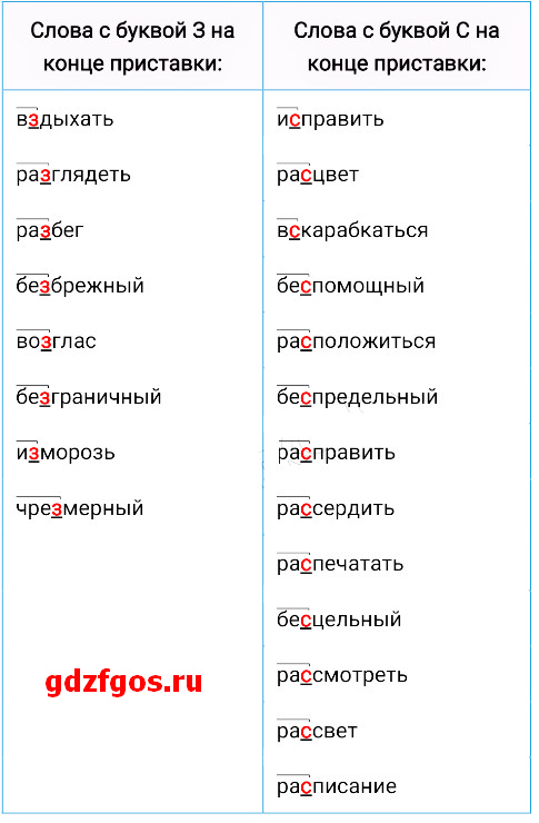 Запишите слова в две колонки: 1) с буквой з на конце приставки; 2) с буквой с на конце приставки. Сколько приставок в выделенном слове?